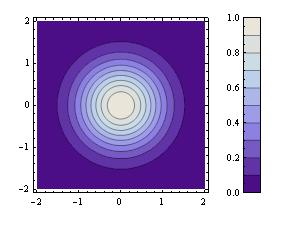 ColorbarPlot[Exp[-(#1^2 + #2^2)] &, {-2, 2}, {-2, 2},PlotType->ContourPlot]
