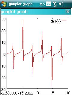 but this is not supported in the pocket version since the number of available terminals is limited. One minor gripe that I have is that I cannot seem to find a way to output a graph to an image file that is natively supported by Windows Mobile so I cannot produce a plot in gnuplot and then open it in the standard image viewer. Of course one way around this is to use some sort of screenshot-taking program as I did for all of the images in this post.