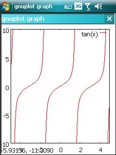 The above plot looks odd, not because there is anything wrong with this port, but because gnuplot does not plot the tan function very well by default – those pesky singularities you see. Manually setting the x and y axes results in something much better.